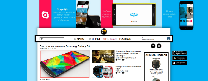 На портале Games-tv.ru была создана уникальная брендированная зона, с возможностью перехода на страницу проекта, на которой пользователь может подробнее узнать о возможностях приложения Skype Qik.