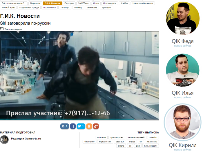 При поддержке Games-tv.ru в популярной программе «Г.И.К. Новости», оформленный в стилистике Skype QIK, был запущен конкурс с ссылкой на промо-сайт. У каждого пользователя есть уникальная возможность попасть в один из выпусков передачи. Для того, чтобы принять участие в конкурсе, участники должны установить себе на девайс приложение Skype Qik и при помощи него записать видео-задание для редакции Games-tv.ru. В каждом последующем выпуске онлайн-программы «Г.И.К. Новости» ведущий будет выполнять наиболее интересное задание. Победитель, который прислал лучшее видеосообщение, определится путем зрительского голосования по итогам восьми спецвыпусков и автор видео получит приз от партнеров проекта.