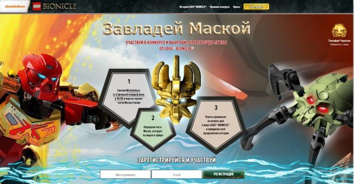 В рамках спецпроекта был запущен конкурс «Завладей маской» для детей, которые любят героев со сверхспособностями. Для того, чтобы принять в нем участие, пользователям предлагается посмотреть серию мультфильмов о повелителях стихий и запомнить часть Маски Стихии, которая появляется на экране. Каждый 50-ый участник, который её верно определит и ответит на вопрос об истории острова и героях Bionicle, выигрывает набор LEGO Bionicle.