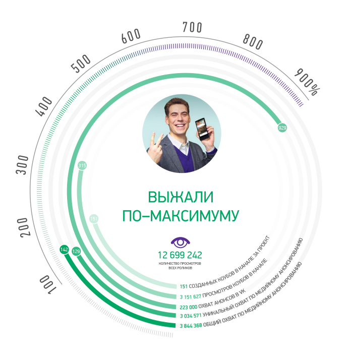 Digital-агентство Re:evolution успешно реализовало спецпроект с видеохостингом COUB.com по продвижению фаблета MegaFon Login+. Кампания под названием «Вот это поворот!» показала основное преимущество нового телефона. Повернутый горизонтально аппарат с большим и ярким экраном превращается в удобный планшет. Общий охват спецпроекта составил 3 млн уникальных пользователей
