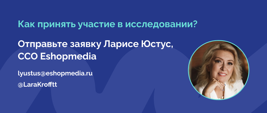 Для того чтобы принять участие в исследовании, нужно связаться слидером проекта, коммерческим директором компании Eshopmedia поэлектронной почтеили в «Телеграме». Послекороткой валидации на предмет соответствия требованиям к респондентуисследования желающие получат доступ к анкете.