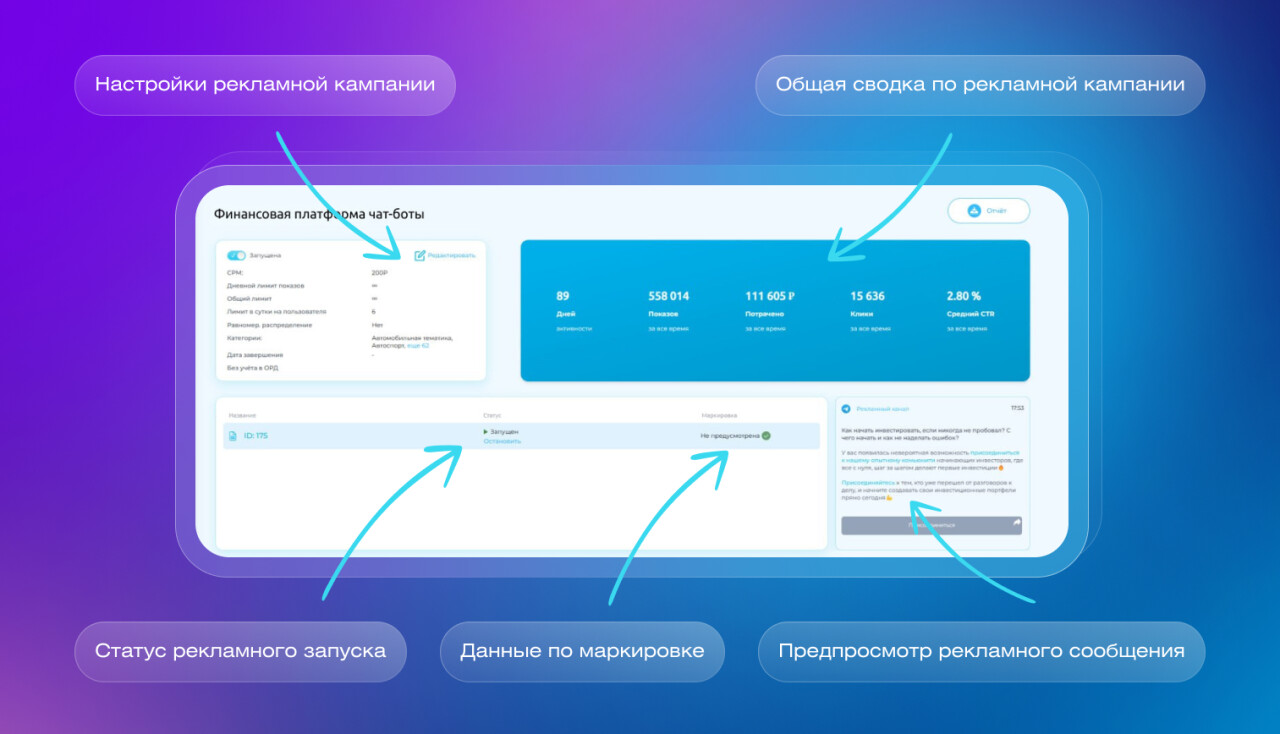С ее помощью можно размещать рекламу в чат-ботах в Telegram