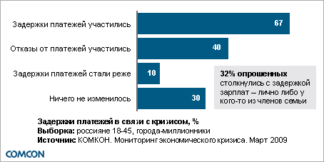 Ситуацию комментирует Генеральный директор КОМКОН Елена Конева: «С начала 90-х годов российский бизнес прошел большой путь развития цивилизованных бизнес-отношений. Всего несколько месяцев кризиса начинают сметать наши достижения. Неплатежи в текущей ситуации – это не просто неспособность погасить свои задолженности по выполненным проектам, это становится универсальным экспресс-объяснением в отношениях компаний. Часто не предпринимается никаких попыток обсудить рассрочку долга, его реструктуризацию, принести извинения. Реальность такова, что заявления многих компаний о соблюдении деловой этики не проходят проверку трудными временами».