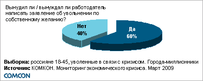 Среди опрошенных, потерявших в связи с кризисом работу, 60% столкнулись с ситуацией принуждения к написанию заявления об увольнении по собственному желанию.
