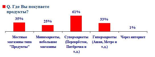 Что же касается тех мест, где россияне предпочитают совершать покупки, то голоса респондентов распределились следующим образом: