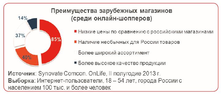 Среди покупателей, выбравших зарубежные онлайн-магазины, большинство респондентов отметили низкие цены по сравнению с российскими онлайн-ритейлерами, наличие необычных для России товаров, широкий ассортимент, а 14% и вовсе считают, что в зарубежных магазинах качество товаров выше.
