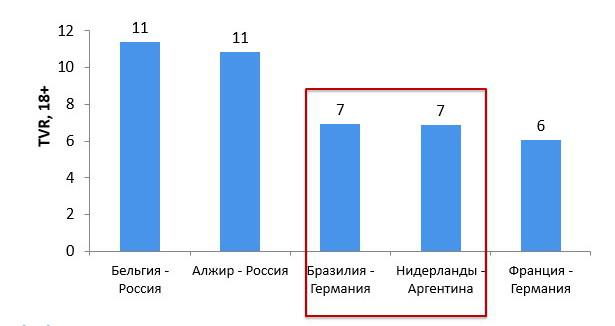 Согласно исследованию, проведенному агентством Initiative, матчи полуфинала чемпионата мира по футболу вошли в Топ-5 самых популярных среди россиян, уступив лишь футбольным поединкам с участием России