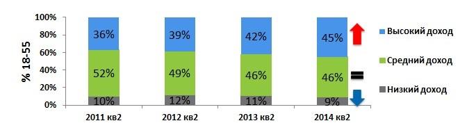 Агентство Initiative представило анализ потребительских трендов 2014 года. В целом рост высокодоходного населения продолжается, однако российские потребители стараются контролировать свои расходы