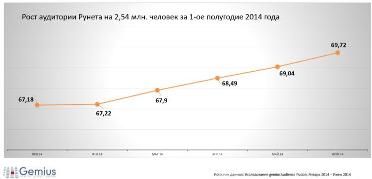 Среди аудитории 18+ в первом полугодии наблюдался рост на 2,54 млн человек. Если в январе в Рунете насчитывалось 61,1 млн посетителей, то к июню этот показатель достиг 69,7 млн пользователей.