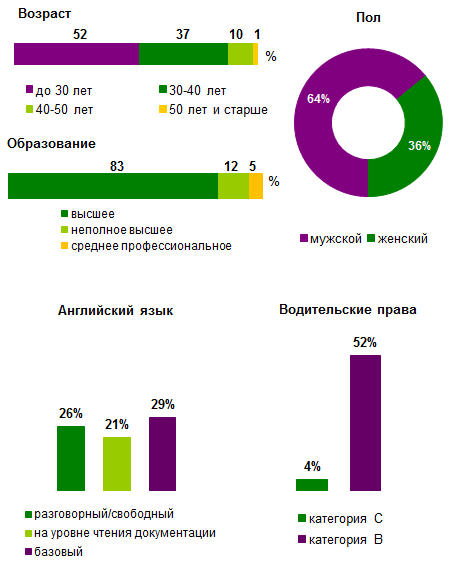 Портрет соискателя Более половины претендентов на позицию интернет-маркетолога (52%) — молодые специалисты в возрасте до 30 лет. 64% кандидатов — мужчины. 83% соискателей имеют диплом вуза, 12% — неоконченное высшее образование.