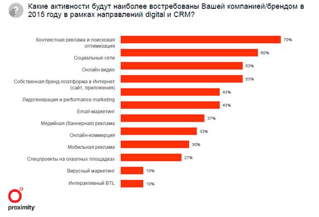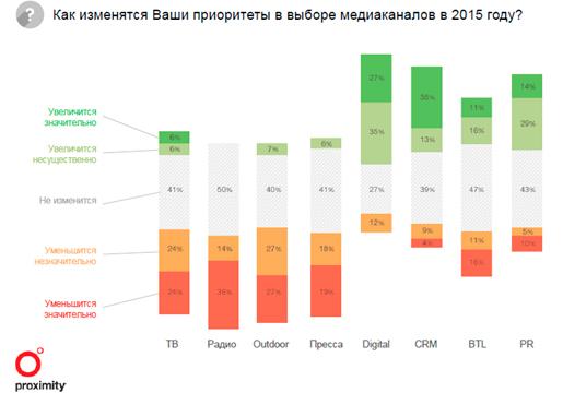 Результаты опроса показали, что в 2015 году большое значение для рекламодателей будут иметь направления digital, CRM и PR.