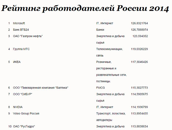 HeadHunter опубликовала ежегодный открытый рейтинг работодателей, в который вошли более 200 компаний