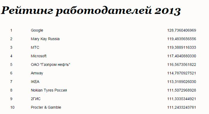 Работодатели оцениваются по трем критериям: мнение соискателей, ищущих работу, оценка эффективности деятельности HR департамента, мнение сотрудников компаний.