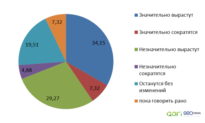 Только 12% респондентов собираются сокращать расходы на рекламу. Около 20% не собираются перекраивать старые схемы, а 63% – расходы на рекламу и маркетинг только увеличат.
