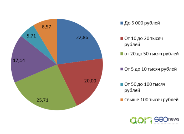 Какие же это бюджеты? 23% тратят в месяц на рекламу до 5 000 руб., ещё 20% - от 10 до 20 тыс. руб., почти 26% - от 20 до 50 тыс. руб. Играют по-крупному и платят за рекламу более 100 тыс. руб. ежемесячно только 9% рекламодателей.