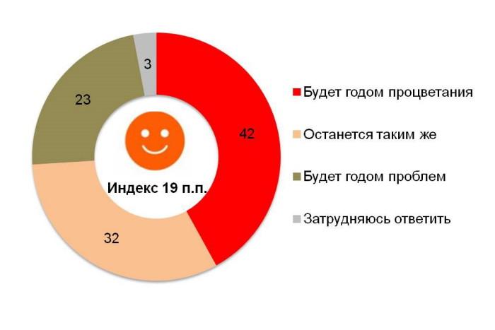 На вопросы исследования ответили более 60 тысяч человек в 65 странах мира. Согласно полученным результатам, 42% жителей Земли уверены, что 2015 год будет годом экономического процветания. 23% респондентов полагают, что 2015 год принесет с собой новые экономические проблемы. Почти треть (32%) участников опроса во всем мире считают, что в 2015 году экономическая ситуация останется такой же, как и в предыдущие годы (см. Диаграмму 1).