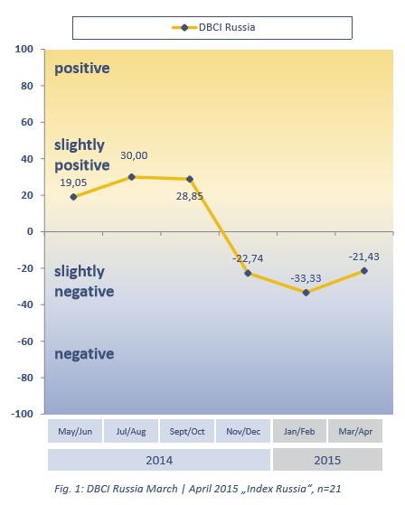 Исследование Digital Signage Business Climate Index Russia проводится в России в шестой раз. Со времени последнего исследования, в январе, показатель несколько вырос, на 11,90 базовых пунктов, с отметки -33,33 до -21,43. При этом прогноз на следующие шесть месяцев несколько улучшился и уже не настолько пессимистичен. Тем не менее, участники рынка не ожидают подъема экономики в ближайшем будущем.