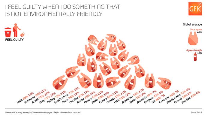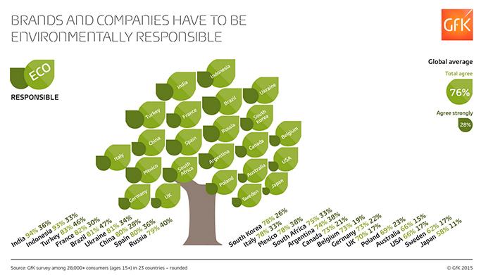 Специально ко Всемирному Дню Земли компания GfK представила результаты исследования, целью которого было узнать, насколько люди во всем мире разделяют экологические ценности, и что это значит для производителей товаров и сервисов. В опросе приняли участие более 28 тысяч человек из 23 стран мира, включая Россию