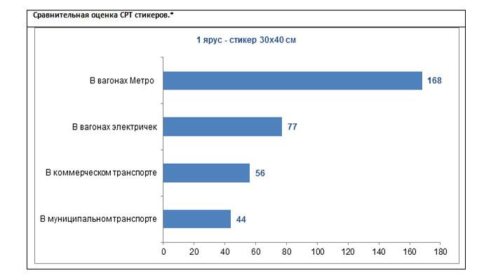 Сравнительная оценка CPT стикеров позволяет говорить о размещении стикеров в электропоездах как о чрезвычайно выгодном для рекламодателя.