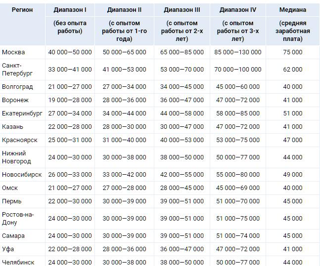 Средняя заработная плата менеджера по внутренним коммуникациям в Москве составляет 75 000 руб., в Санкт-Петербурге — 62 000 руб., в Волгограде — 40 000 руб., в Воронеже — 41 000 руб., в Екатеринбурге — 51 000 руб., в Казани — 41 000 руб., в Красноярске — 47 000 руб., в Нижнем Новгороде — 44 000 руб., в Новосибирске — 49 000 руб., в Омске — 40 000 руб., в Перми — 45 000 руб., в Ростове-на-Дону — 45 000 руб., в Самаре — 45 000 руб., в Уфе — 41 000 руб., в Челябинске — 44 000 руб.