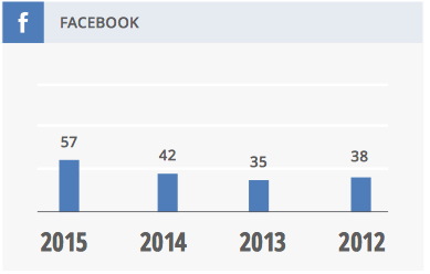 57 (11%) участвующих в исследовании CEO имеют аккаунты в Facebook, что на 2,7% больше, чем в прошлом году. Неудивительно, что самый популярный из них – это Марк Цукерберг (больше 33 млн фолловеров). 21% глав компаний-пользователей Facebook имеют меньше, чем 100 друзей, 26% – меньше, чем 500. У восьми есть официальные фан-страницы в сети, 28 используют полуприватные аккаунты, 21 – приватные.