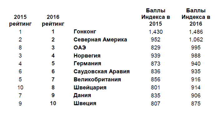 Верхние строчки GfK Connected Consumer Index последние два года занимают Гонконг и Северная Америка (США, Канада и Мексика), однако их быстро догоняют Объединенные Арабские Эмираты: согласно прогнозу, они переместятся с восьмого на третье место.