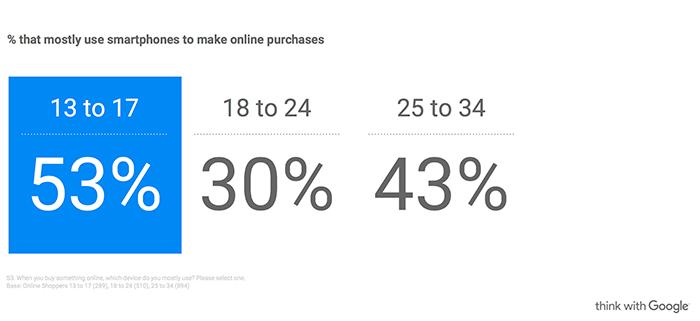 И когда дело доходит до покупок, подростки проявляются как настоящие «мобильные лидеры». Респонденты, часто использующие смартфоны для покупок онлайн