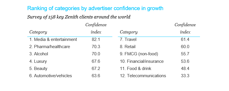 Исследование Zenith: рекламодатели из индустрии медиа и развлечений больше всех рассчитывают на рост бизнеса в 2017 году