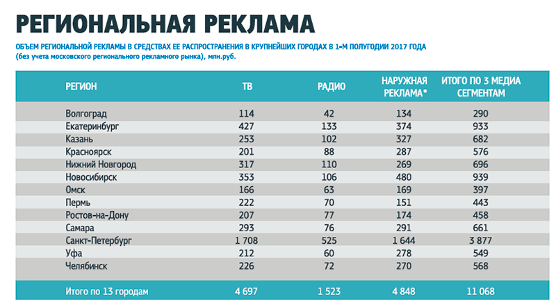 Российский рекламный рынок вырос на 14% в первом полугодии