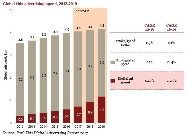 PwC: к 2019 году рекламодатели потратят на цифровую рекламу для детей $1,2 млрд