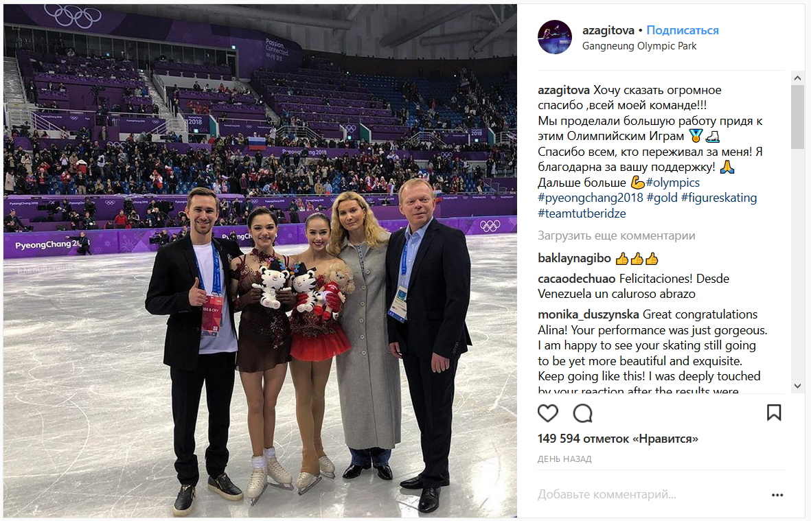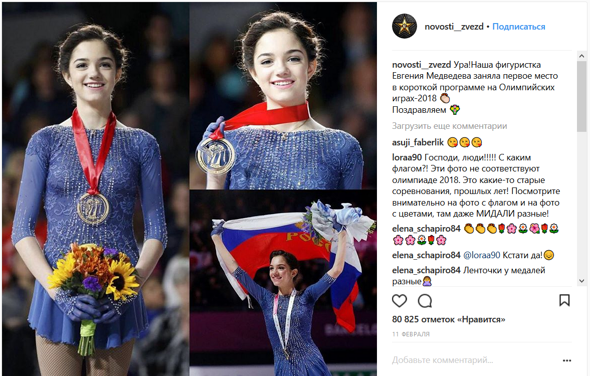 Самыми обсуждаемыми в рунете российскими спортсменками были Евгения Медведева и Алина Загитова. Девушки показали невероятный уровень катания, заворожив весь мир. «Те, кто получает выше 60 баллов, — очень хорошие фигуристки. Кто получает выше 70, — великолепные. Ну а те, у кого больше 80, — это просто русские», — прокомментировала выступление фигуристок Тара Липински, чемпионка Олимпиады-1998 в женском фигурном катании. Напомним, что обе фигуристки получили идентичные оценки за произвольную программу — 156,65, но в короткой лидировала Алина Загитова, поэтому в итоге получила первое место.