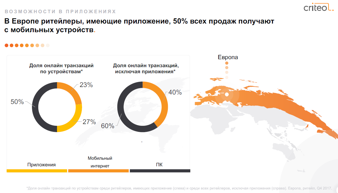 ритейлеры также отметили, что конверсия в продажи в приложениях выше в три