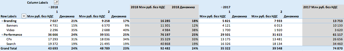 При этом рост сегмента Performance несколько опережает общеотраслевую динамику — 25% по сравнению с аналогичным периодом прошлого года, отмечают в IAB.