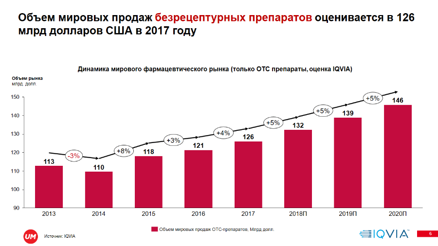 Мировой рынок безрецептурных препаратов в 2017 г. достиг отметки в 126 млрд долларов, что составляет примерно 11% от общего фармацевтического рынка.