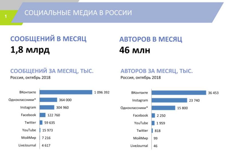 В рамках данного исследования были выделены и проанализированы более 1,8 млрд сообщений в соцмедиа из России за октябрь 2018 года от более, чем 46 млн авторов.