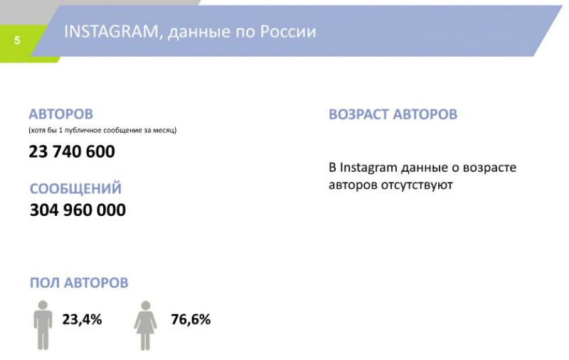 Популярность Instagram. За прошедший год Россия выбилась в лидеры по числу активных пользователей Instagram в Европе. Объем русскоязычного контента и количество пользователей соцсети увеличился в три раза и продолжает расти. По числу активных пользователей в Instagram Россия заняла шестое место в мире, по данным компании AiTarget, официального ресселера Instagram и Facebook в России.