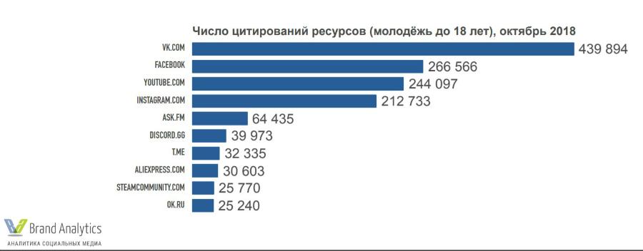 Василий Черный, коммерческий директор Brand Analytics: «Несмотря на то, что контент ВК — самый популярный у молодежи, Facebook она цитирует всего лишь в полтора раза меньше. Хотя активных пользователей в Facebook меньше, чем в ВК, в 18 раз. Но главный тренд — это «азиатские мотивы» и в контенте, которым интересуется молодежь, и в платформах для общения, которые она выбирает себе «на будущее». Достаточно вспомнить первую позицию по вовлеченности в российском твиттере фан-клуба BTS (южнокорейская группа, жанр K-pop), а также взрывной рост использования российской молодежью таких социальных видеоплатформ, как Like.video и TikTok, созданных в Сингапуре и Китае».