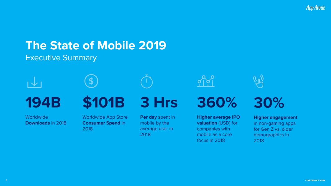 За 2018 г. потребители мобильных приложений во всем мире потратили $101 млрд на совершение покупок во внутренних магазинах, сообщает компания App Annie в исследовании мобильного рынка приложений. Около 26% покупок приходится на неигровые мобильные приложения, 74% — на мобильные игры.
