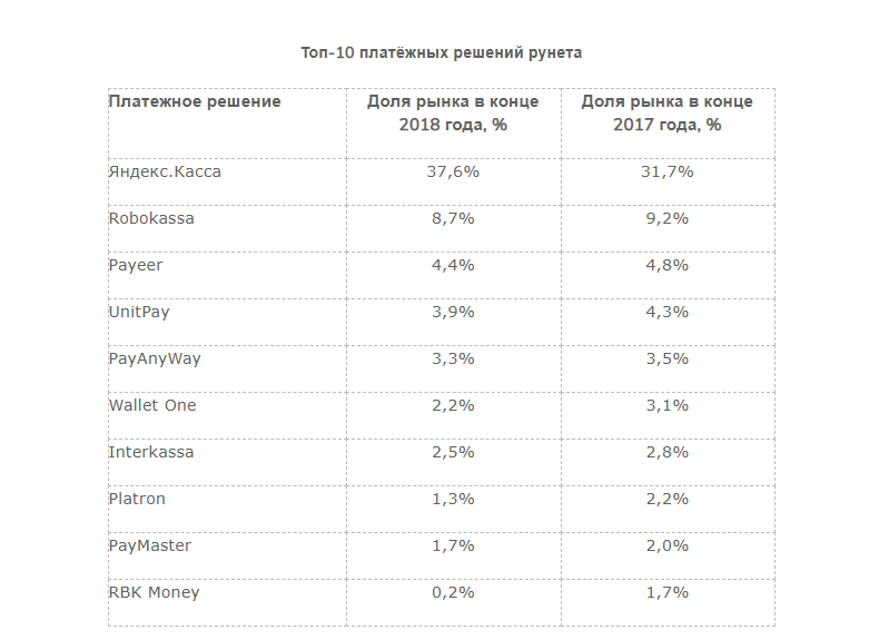 Самыми популярными платежными провайдерами стали «Яндекс.Касса», Robokassa, Payeer, UnitPay и PayAnyWay