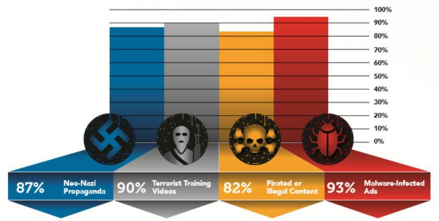 Подавляющее большинство (80%) опрошенных американских потребителей заявили, что сократят покупки продукта или вовсе откажутся от него, если увидят его рекламу рядом с «опасным» контентом. К «экстремальному» содержанию они отнесли порнографию, пиратский контент и вирусные программы