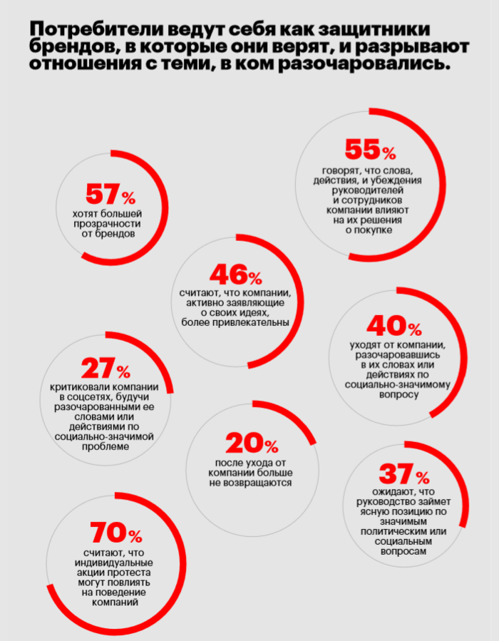 «Многие компании, побоявшиеся открыто защищать свои принципы из-за инертности или страха общественного резонанса, уступили конкурентам», — отмечается в исследовании.