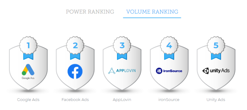 В сегменте размещения рекламы в игровых приложениях доминируют Facebook и Google. На третьем месте стоит площадка AppLovin — в 2019 г. она выросла на 10%. Однако динамика ironSource, занимающей четвертое место, составила 32%. Также в ТОП-6 площадок входят Unity и Vungle.