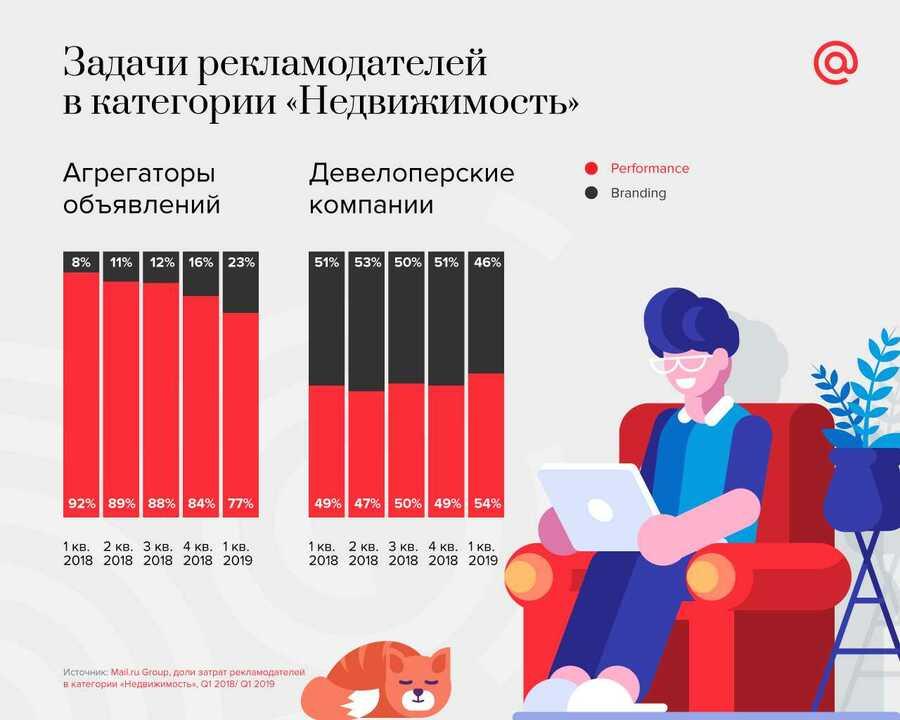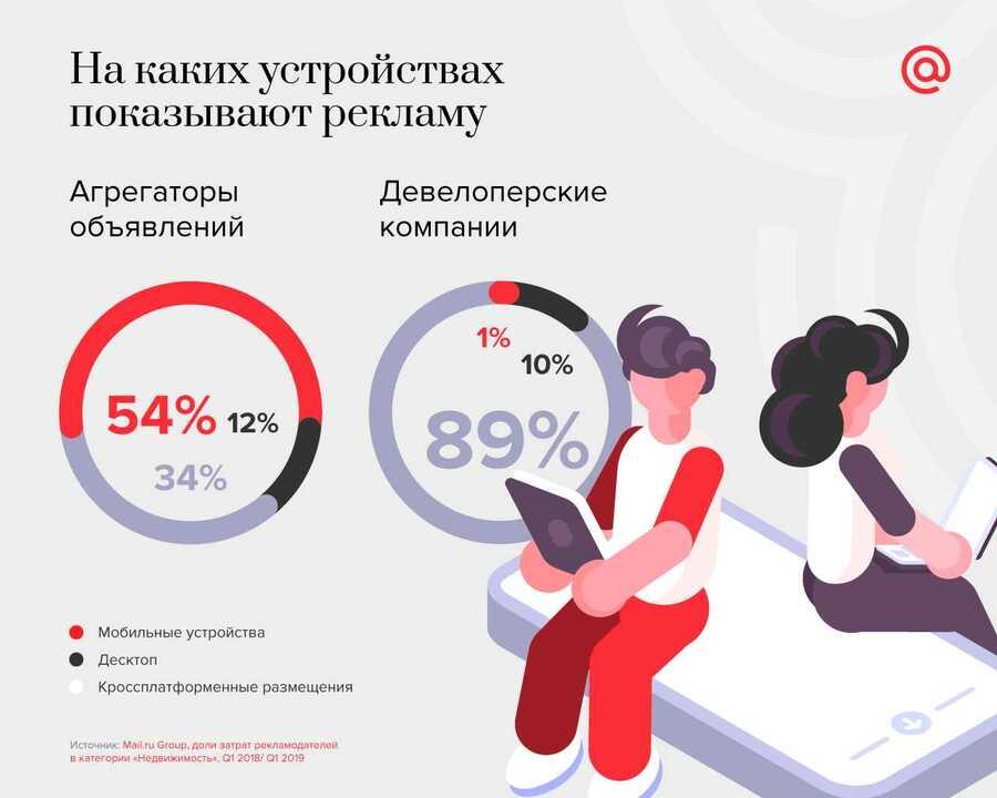 Рекламодатели рынка недвижимости увеличили затраты на онлайн-продвижение. Как говорится в исследовании Mail.ru Group, за 2018 г. расходы на рекламу сегмента на проектах корпорации выросли на 37%. Драйвером роста стало онлайн-продвижение агрегаторов объявлений недвижимости.