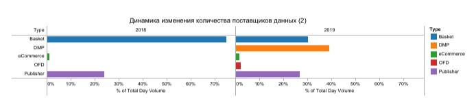 - Объем базы поставщиков данных вырос в 2019 г. на 67%, в частности, они появились в секторах e-commerce и ОФД (оператор фискальных данных). Как отмечается в обзоре, все больше игроков рынка стали продавать свои данные напрямую, без посредников.