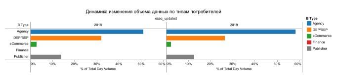- Количество потребителей данных за прошедший год увеличилось на 17%. Примерно на 10% выросла доля агентств как потребителей — они стали активнее наращивать компетенции работы с данными, в том числе формируя отдельные команды.
