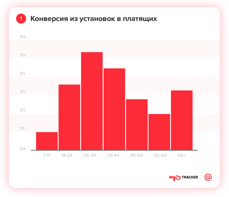 Миллениалы — ядро аудитории и охотнее других платят в играх. Однако пользователи старшего возраста платят больше. Доля людей, которые после установки игры начинают пользоваться платными опциями, выше среди аудитории в возрасте 25–34 лет.