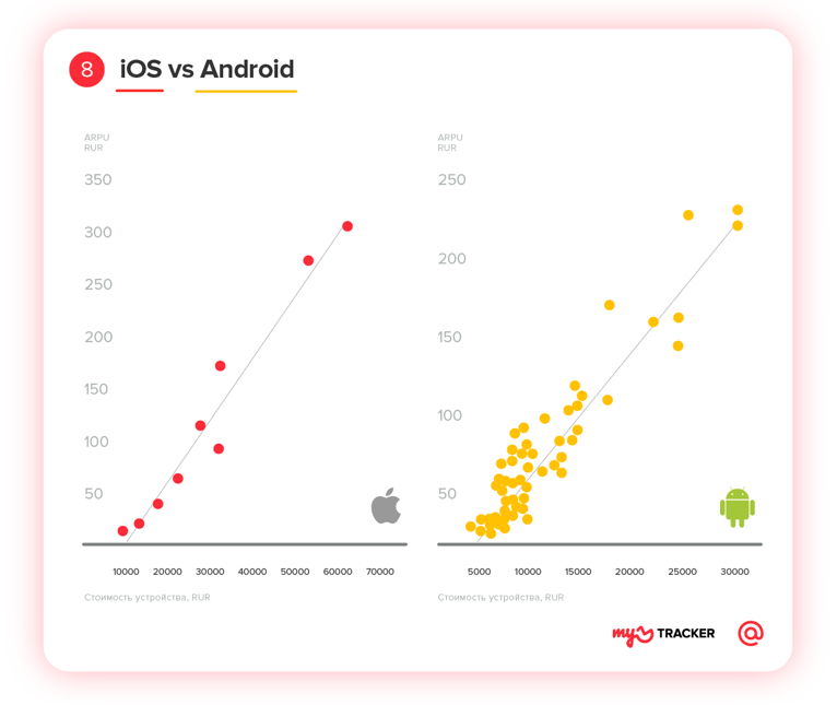 Чем выше доход — тем больше внутриигровые траты. Владельцы iPhone — особенно последних моделей — в среднем платят в играх значительно больше, чем обладатели устройств на Android.