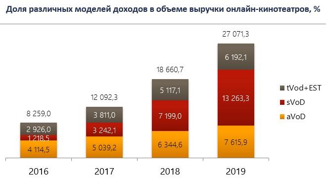 Выручка видеосервисов в России в 2019 году выросла почти на 50%