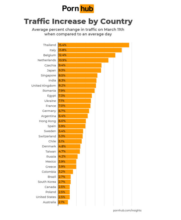 Pornhub также отчитался об увеличении трафика на фоне того, что офисные работники всего мира переходят на удаленную работу.
