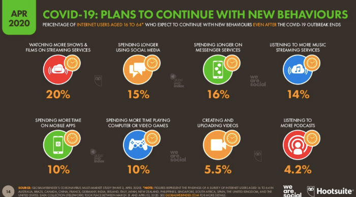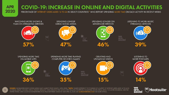В совместном исследовании эксперты компаний Hootsuite и We are social выяснили, какой контент пользователи по всему миру начали потреблять в самоизоляции, на что они тратят время и как изменились их привычки во время пандемии